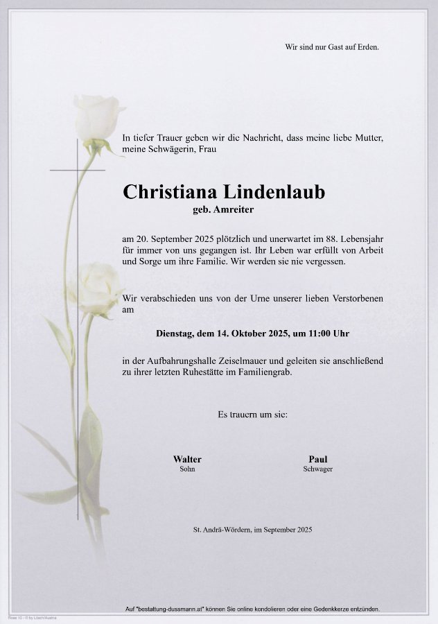 Trauerfeier, Aufbahrungshalle Zeiselmauer