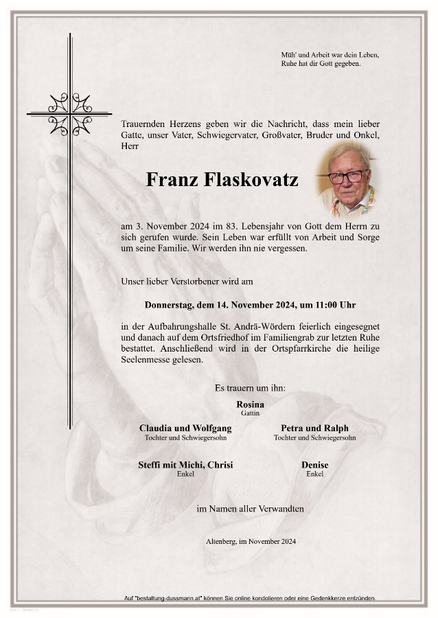 Trauerfeier, Aufbahrungshalle St. Andrä-Wördern