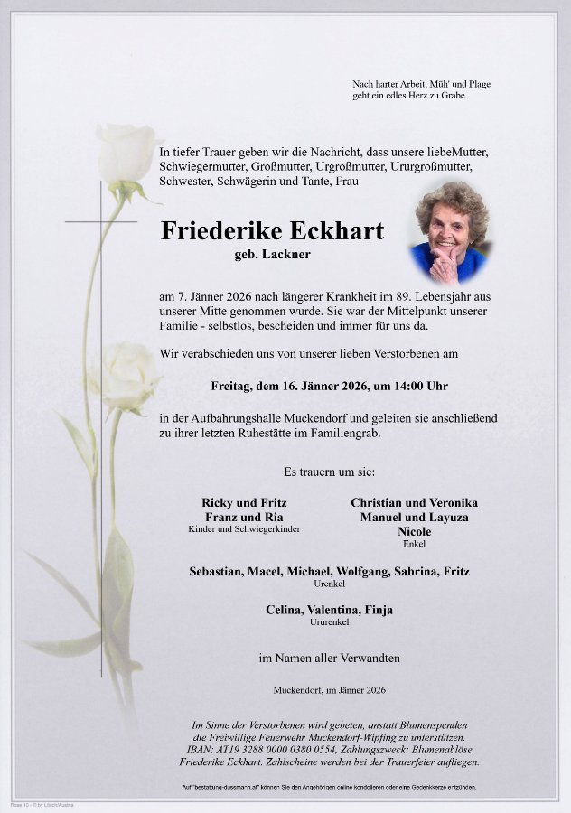geboren am 22. Februar 1937 in Obermarkersdorf gestorben am 7. Januar 2026 in Tulln