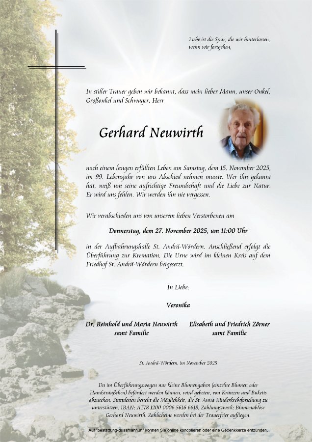 geboren am 7. Februar 1927 in Ortmann gestorben am 15. November 2025 in St. Andrä-Wördern