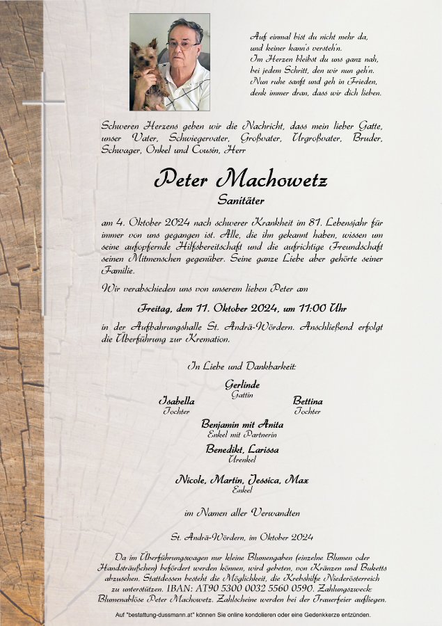 geboren am 29. November 1943 in St. Andrä-Wördern gestorben am 4. Oktober 2024 in St. Andrä-Wördern