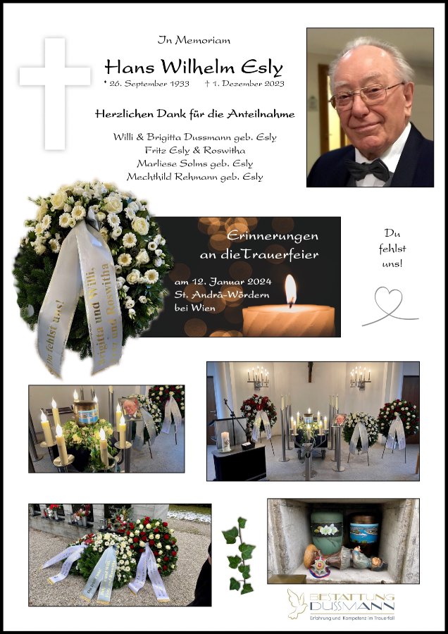 Trauerfeier von Hans Wilhelm: