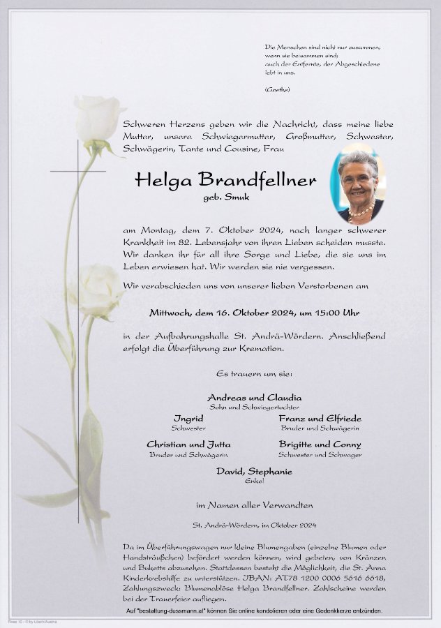 Dein Lebensweg ist zu Ende. Die Lebenstür hat sich geschlossen. Ich danke dir, dass deine Tür immer für mich offen war und ich dich ein Stück des Weges begleiten durfte. Sabine Coners