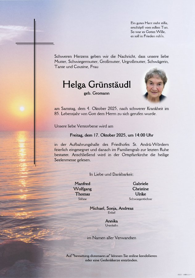 Unsere aufrichtige Anteilnahme entbietet der Vorstand der NÖs Senioren Ortsgruppe St.Andrä-Wördern und Zeiselmauer-Wolfpassing und Familie Heinrich
