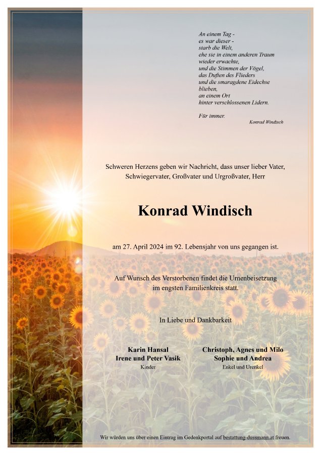 geboren am 21. August 1932 in Wien gestorben am 27. April 2024 in Kirchbach