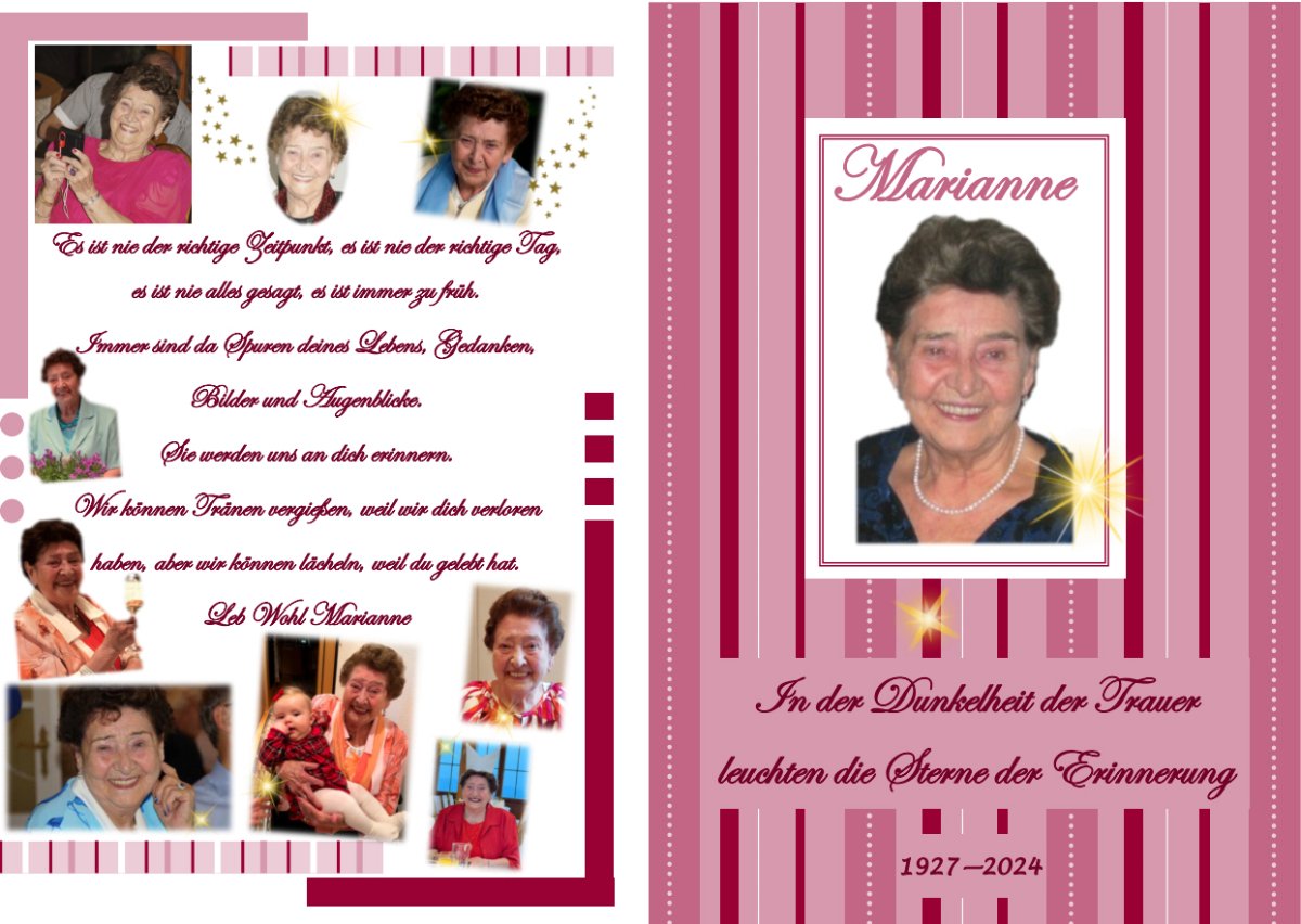 Liebe Marianne, es war schön, dass wir uns noch einmal Zeit genommen hatten, Erinnerungen auszutauschen. Ruhe in Frieden.