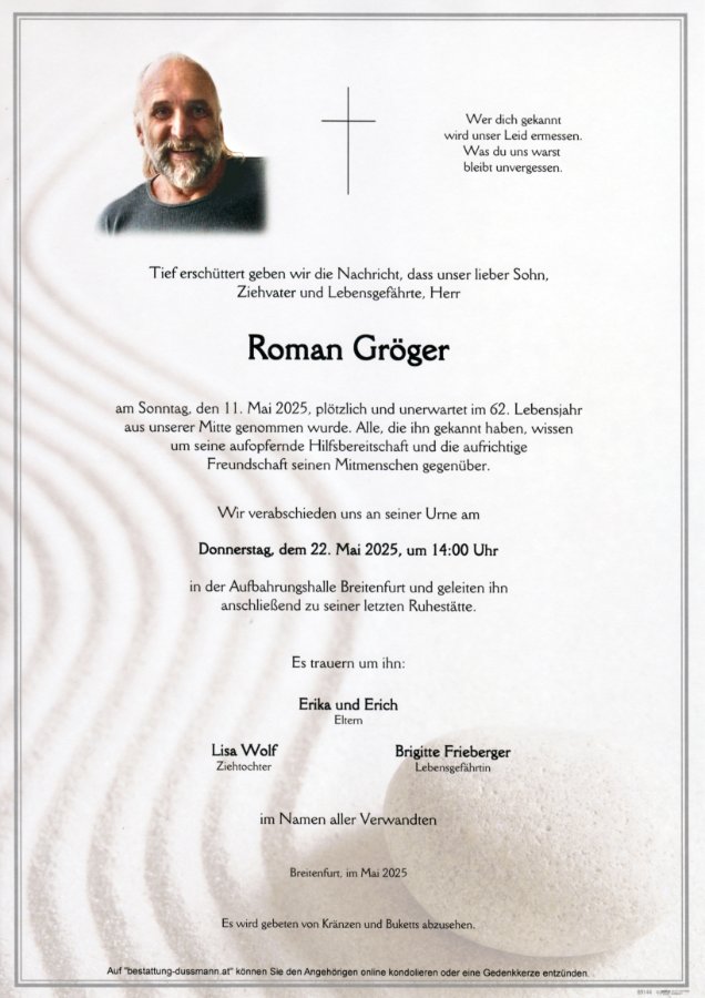Entsetzt und erschüttert...Ruhe in Friede Roman, und mein aufrichtiges Beileid den Hinterbliebenen..... du wirst mir immer in Erinnerung bleibenWolfgang
