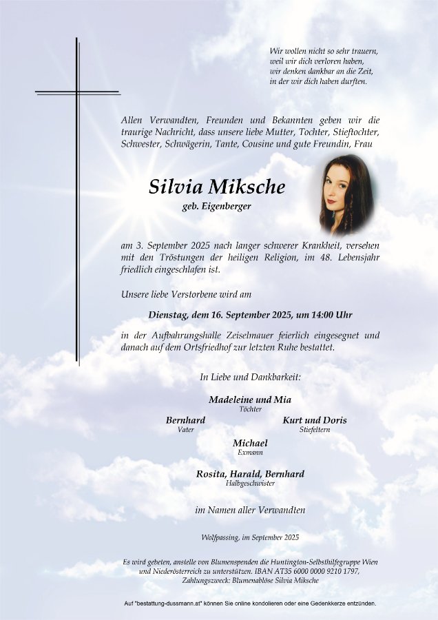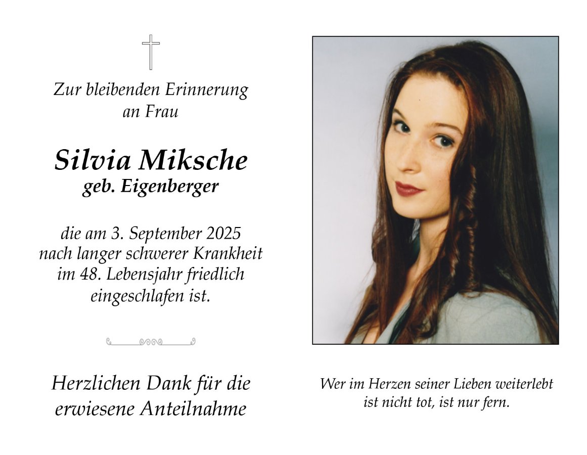Liebe Silvia, so schön, Dich gekannt zu haben, danke für Deine herzliche Art und die netten Nachmittage mit unseren Kindern. Unsere herzlichstes Beileid, den beiden Töchtern Michelle und Mia. Günther, Lukas und Roswitha