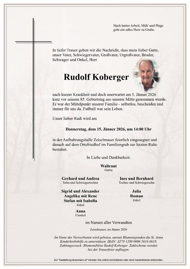 geboren am 10. Januar 1941 in Klosterneuburg gestorben am 5. Januar 2026 in Tulln